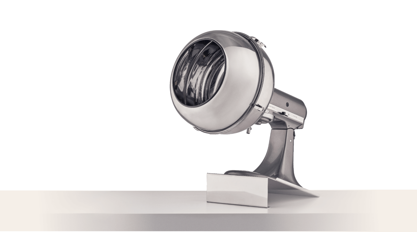 The stand helps to keep the correct angle of inclination of 30 degrees, which will prevent the dragees from falling out of the device and the fall of expensive equipment. Open stainless steel half-sphere bowl is equipped with a protective silicone band.